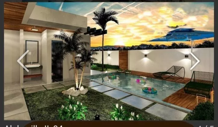 quintal com espaço com piscina