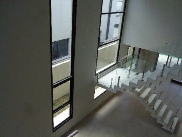 escada com acabamento em quartzo e luminárias em todos os ambientes.
