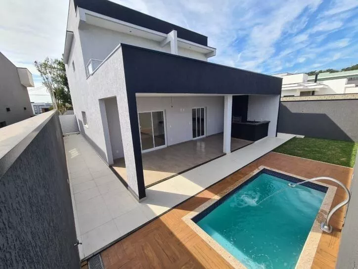 Casa com 3 quartos sendo todos suites, Condomínio Terras do ValeHall de entrada com pé direito duplo.Sala de estar.Sala de jantar integrada com a cozinha.Lavabo completo (área para chuveiro).Escritório ou 4o quarto.3 suítes com varanda.Suíte master com closet. Varanda gourmet com churrasqueira.Piscina.Ampla área de serviço.Tudo em porcelanatoEsquadrias fabricadas sob medida.Toda parte externa em grafiato. Preparação para ar condicionado centralizado na caixa d\'água.Preparação para aquecimento solar em todos banheiros, cozinha e área gourmet.Área do terreno 300 m2Área construída 206 m2Condomínio 325,00IPTU 900,00