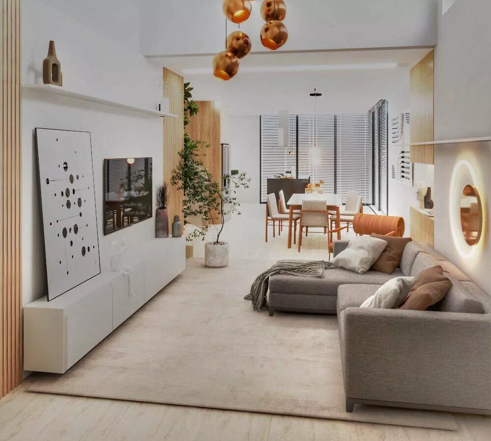 Sala ampliada com porcelanato Portobello