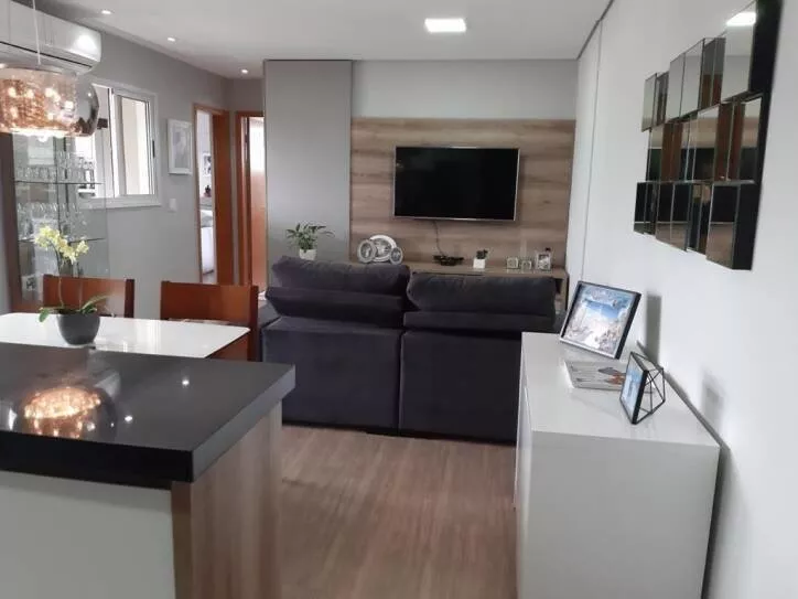 Apto 70 m², 2 dorms com 1 suíte, wc social, armários cozinha, quartos e área de serviço, ar-condicionado, Sacada fechada em blindex, box blindex, 2 vagas, lazer completo. Área Comum Salão de Festas Adulto; Salão de Festas Infantil; Salão de Jogos; Brinquedoteca Fitness Indoor e Outdoor; Piscina com Raia; Piscinas Adulto e Infantil; Sala de Administração; Gazebo Gourmet com Churrasqueira e Forno para Pizza; Gazebo Gourmet dos Esportes; Recanto com Lareira; Quadra Recreativa; Playground; Hiper Play; Bicicletário.